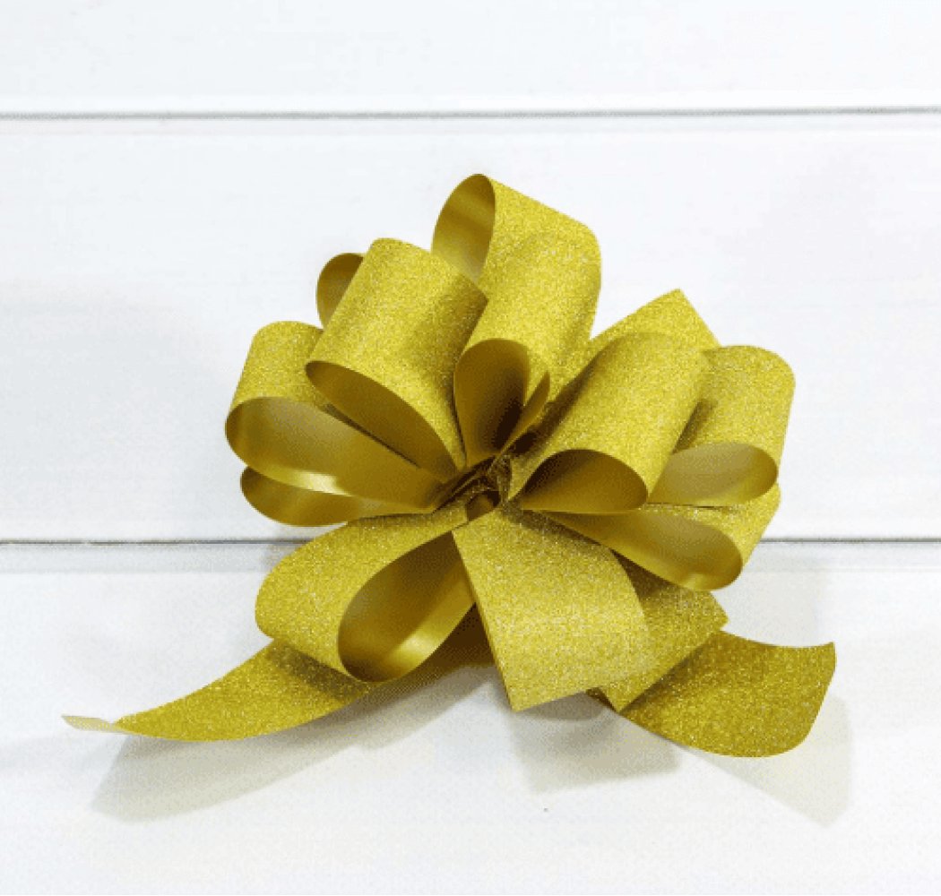 Подарите вашему подарку особое сияние с помощью элегантного банта золотого цвета. Такой аксессуар станет стильным акцентом для оформления коробки и подчеркнёт ценность вашего сюрприза. Бант легко крепится и гармонично смотрится с упаковкой любого размера, делая подарок более праздничным и запоминающимся.