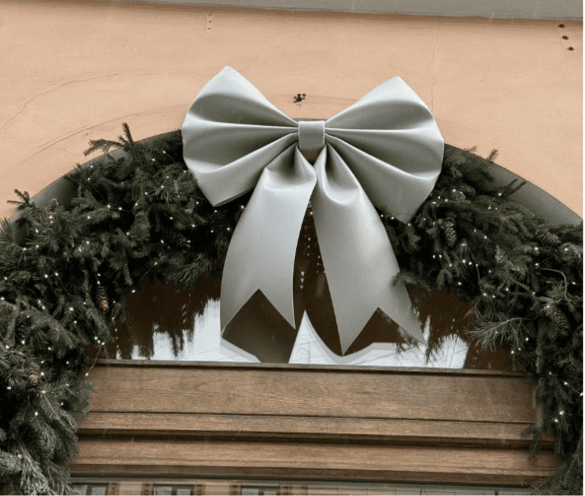Большой праздничный бант от магазина «Империя елок» — это идеальный способ придать витрине стильный и завершенный вид. Сделайте оформление магазина эффектным, создайте настроение праздника и привлеките больше посетителей.