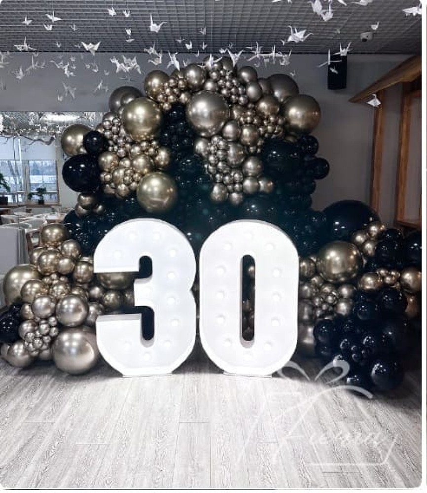 - Большие декоративные цифры «30» с внутренней светодиодной подсветкой