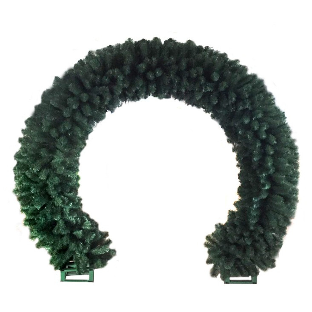 Металлический каркас обеспечивает устойчивость и безопасность при установке как на улице, так и в помещениях. Хвоя изготовлена из мягкого ПВХ зелёного цвета, устойчивого к влаге, морозу и выгоранию. Арка легко собирается и может быть украшена гирляндами, шарами, лентами и другим праздничным декором.