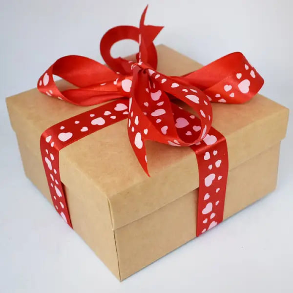 Коробка изготовлена из прочного крафтового материала премиум-класса и украшена декоративной лентой, которая придает подарку завершенный и праздничный вид. Она подходит для сладких наборов, сувениров, аксессуаров и любых других подарков. Натуральный крафтовый цвет в сочетании с лентой создаёт стильную и привлекательную упаковку.